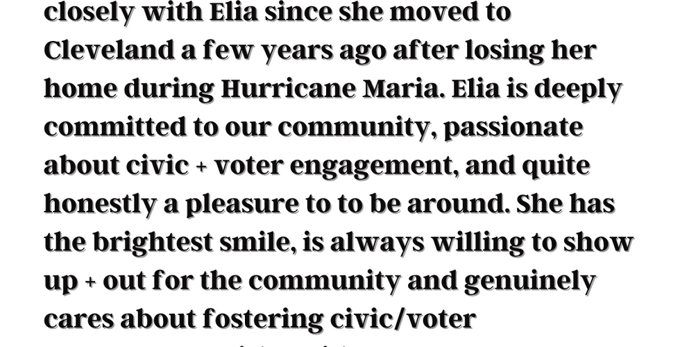 In 2022, Cleveland VOTES honored Cuyahoga County Board of Elections employee Elia Burgos.